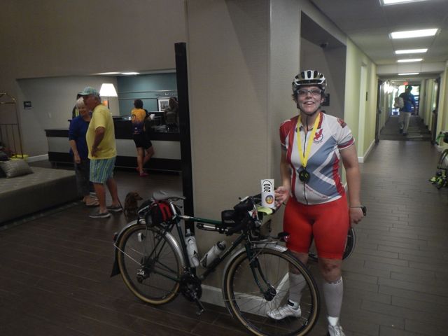 I keep thinking someone will catch me, but no one does. The last 5 miles are a race to see if I can get to the finish before the sun comes out. Dick is outside at the entrance to the hotel and congratulates me. I’m elated and yet still in a fugue state else as I receive my medal. I try calling a number of people, but somehow no one is home. This is the first time I have ever finished a grand randonnee by myself and the experience is somehow lonely in a way.