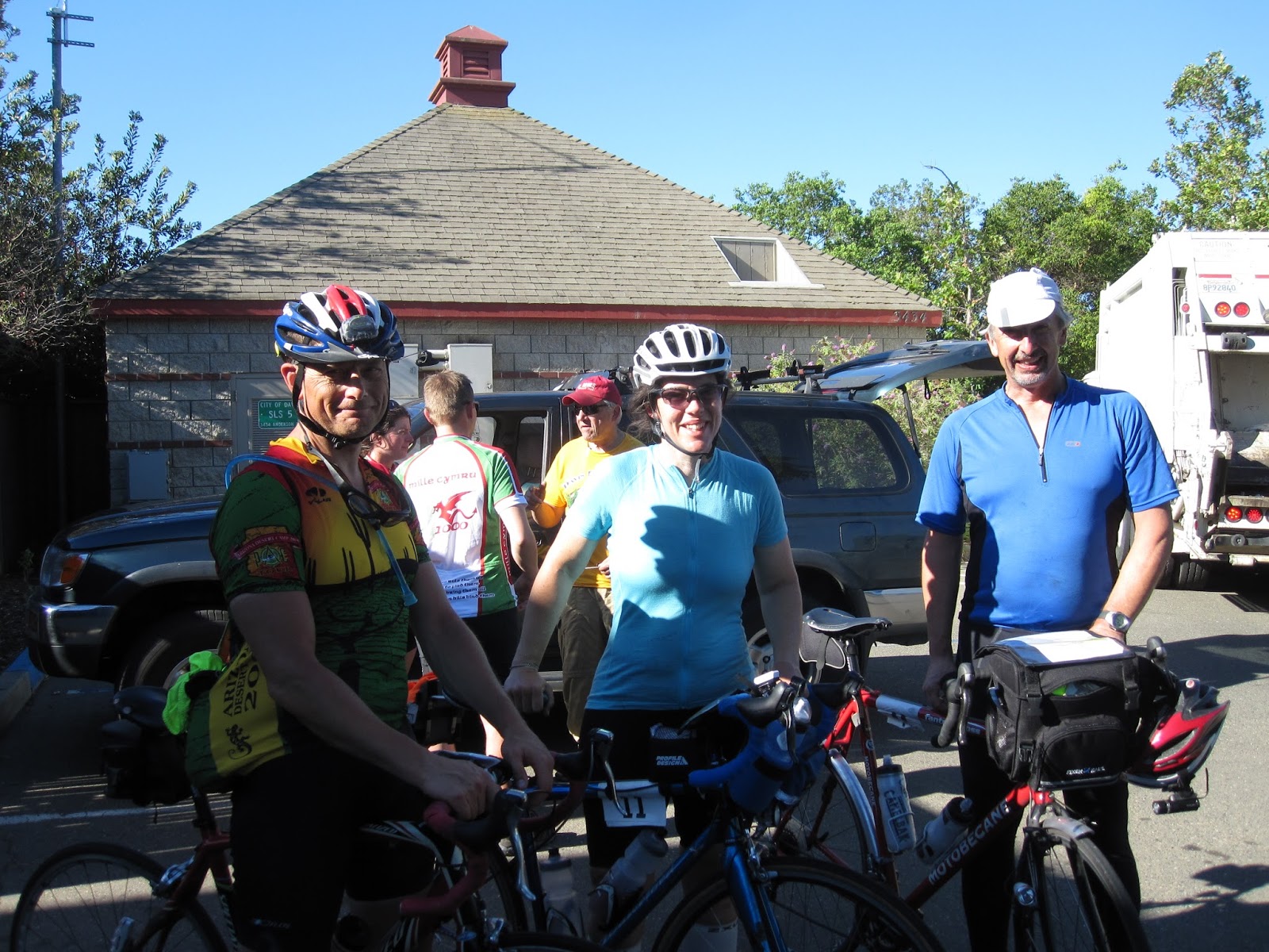John and Bob came by and we were off to Knight's landing, 17 miles from the end. We stopped for fluids and the bathroom. This was envigorating, must have been the electrolytes in the coconut water. we pulled out and hammered our way to the finish at 20 plus miles and hour. Just in time to avoid the heat rolling in. We had photos and a drink at the finish. "As strong as you were at the end, you must feel pretty good about LEL, one month away." And I did.