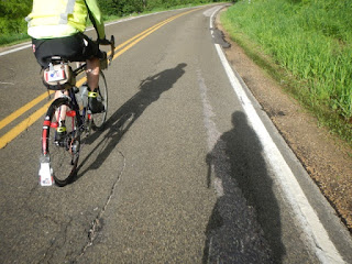 In my mind, the highlight of the 400k is the assault of the Baraboo bluff on Freedom Road. It's a three stage climb, sure it's steep, but there are very cool looking old log cabins and the whole thing has the feeling of a time warp. I really like it despite the double digit grade. The rain had ended and the pavement was dry as we climbed up. I had to drop back after another rider came up and slowly ascended in front of me with his red blinky going at a pulse of about heartbeat rate. That always puts me right to sleep and I wound up staring at my wheel and slowing until he was out of sight. But the climb was great and so was the descent! We rolled through Baraboo to the 20 mile mark literally on the same pace as I had been on last year. So long Sid, your time has past.