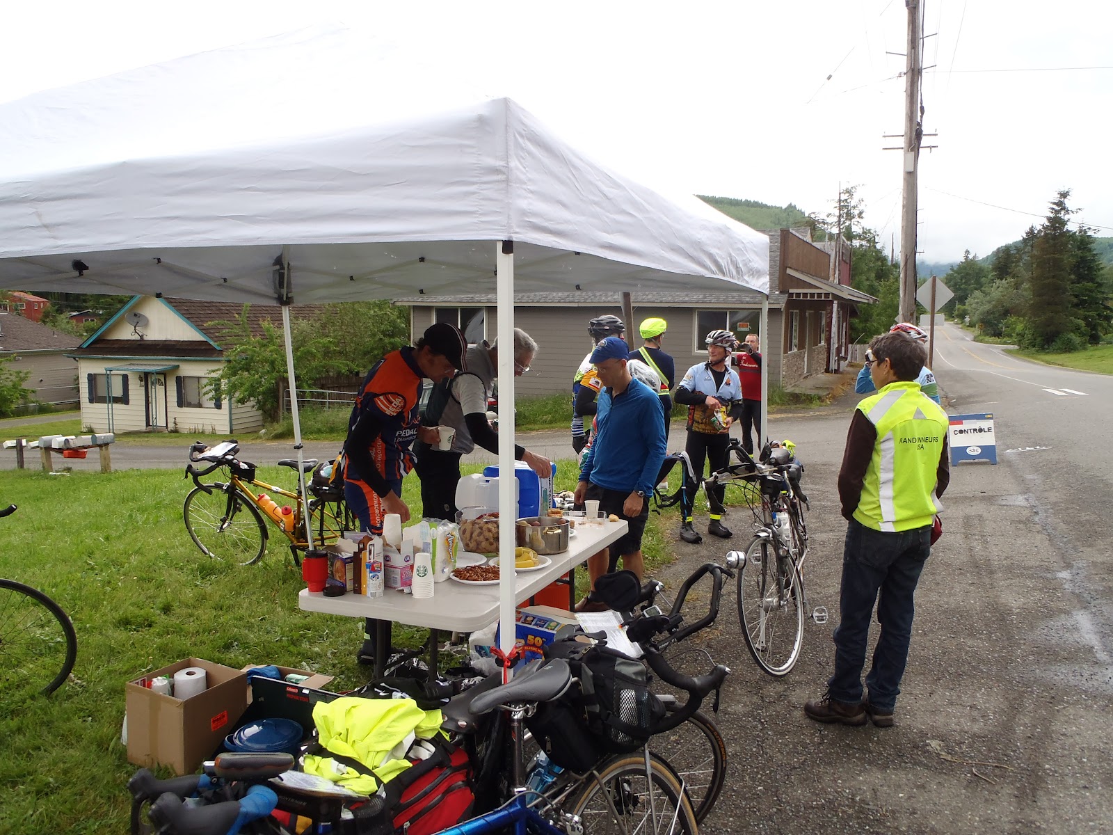 Ron finally showed up and I could feel coughing coming on so I continued on. I rolled alone through the rain, thankful that there was enough downhill to make it an easy pedal. I got to Marblemount at just before noon.