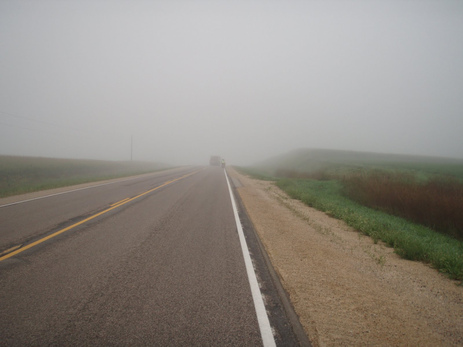 So we started off. The prediction was that the fog would clear around 9 or 10 am so I was quite happy to pedal off. As we rode out of Apple Valley, I couldn't help but noticed that large groups of riders were staying together. In fact, about a dozen of us were together for the first 30 miles to the first control in Cannon Falls. I couldn't really say who they were or exactly how many there were because I really couldn't see more than out 10 feet in front of me. This had everything to do with the thick fog and some to do with the fact that I had to take my glasses off due to water accumulation and without them, I can only see about 10 feet.