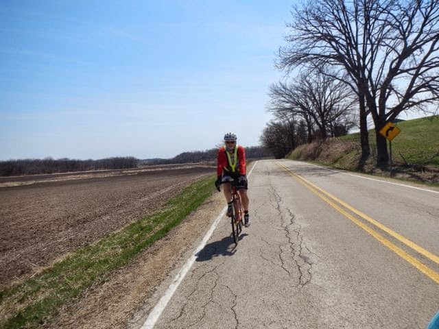 The hills of this part of Wisconsin actually remind me of France in some ways. They roll gently with some steep pitches in places and I noticed that spring had indeed sprung in this part of the country. Forsythia was in bloom and the occasional daffodil greeted me on street corners of the small towns. It has been quite dry and streams were a little down, but still flowing. Makes the watery side of my happy to ride near creeks and streams.